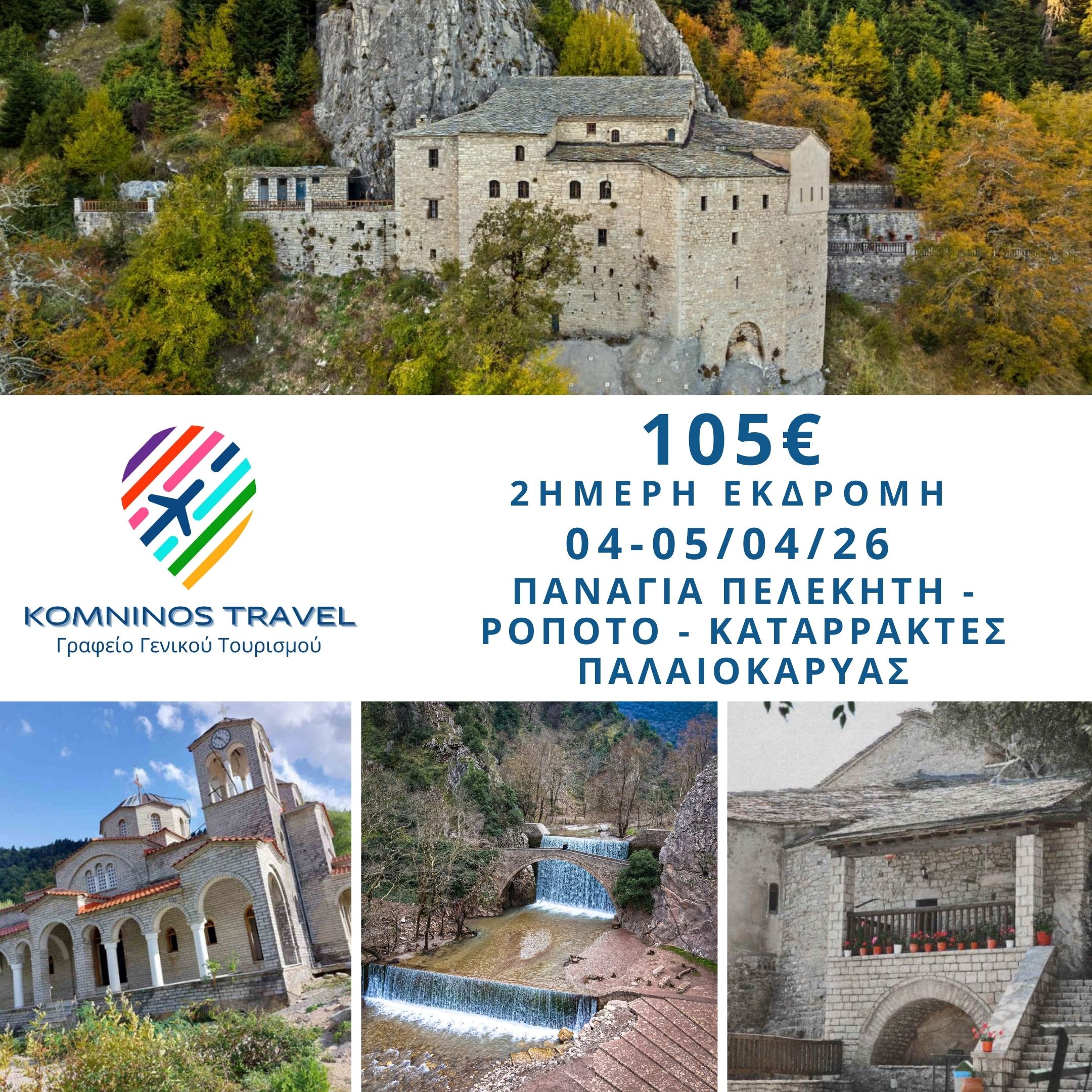 04-05/04/26 ΔΙΗΜΕΡΗ ΕΚΔΡΟΜΗ ΠΑΝΑΓΙΑ ΠΕΛΕΚΗΤΗ – ΡΟΠΟΤΟ – ΚΑΤΑΡΡΑΚΤΕΣ ΠΑΛΑΙΟΚΑΡΥΑΣ