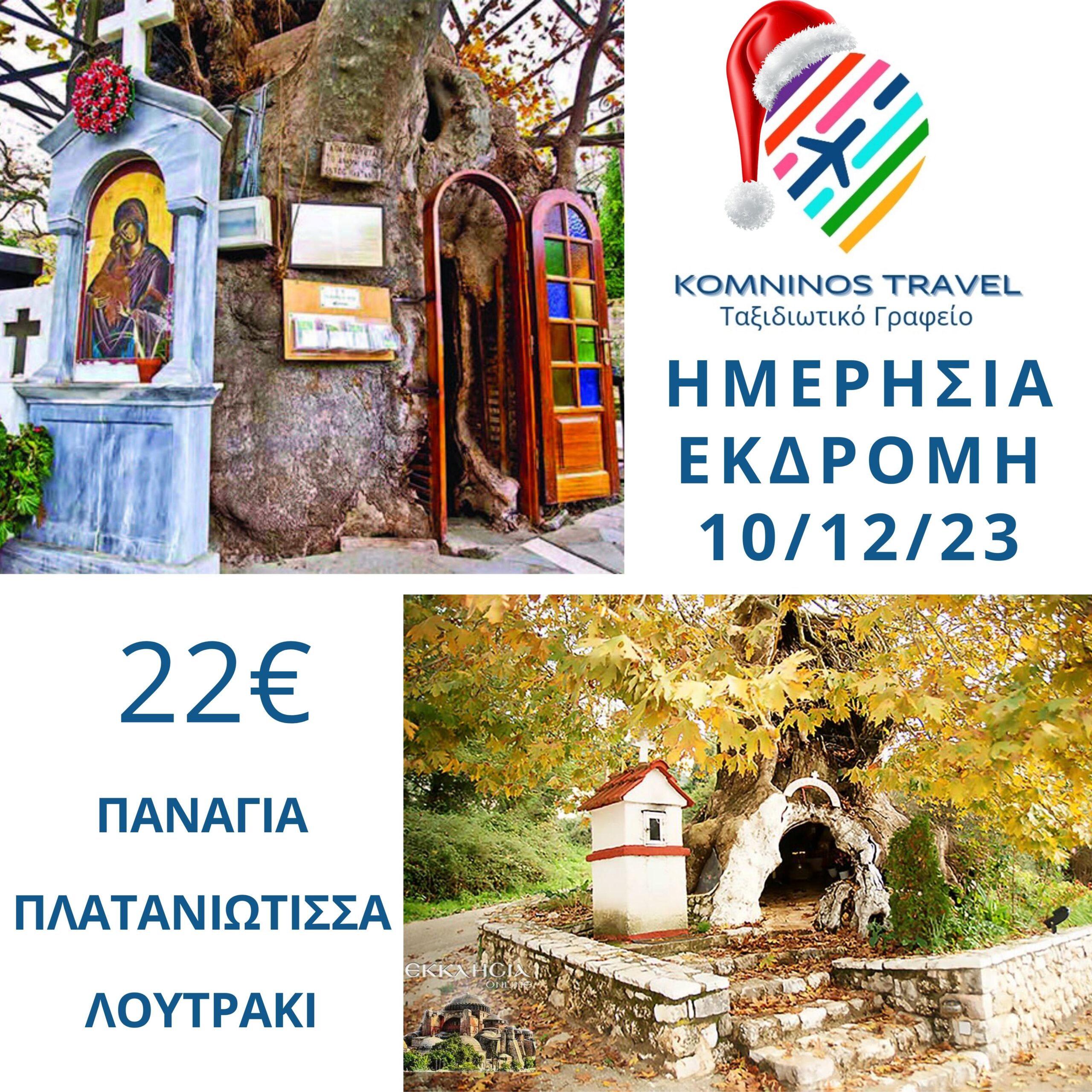 10/12/23 Ημερήσια εκδρομή Παναγία Πλατανιώτισσα – Λουτράκι