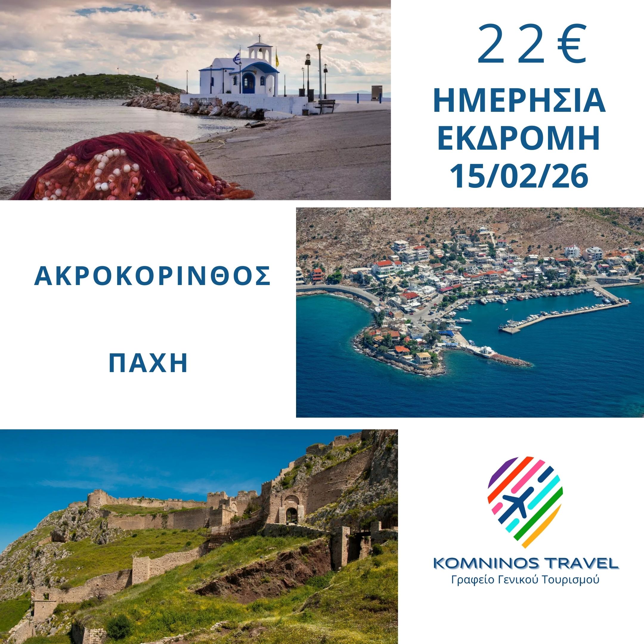 15/02/2026 ΗΜΕΡΗΣΙΑ ΕΚΔΡΟΜΗ ΑΚΡΟΚΟΡΙΝΘΟΣ- ΠΑΧΗ ΜΕΓΑΡΩΝ