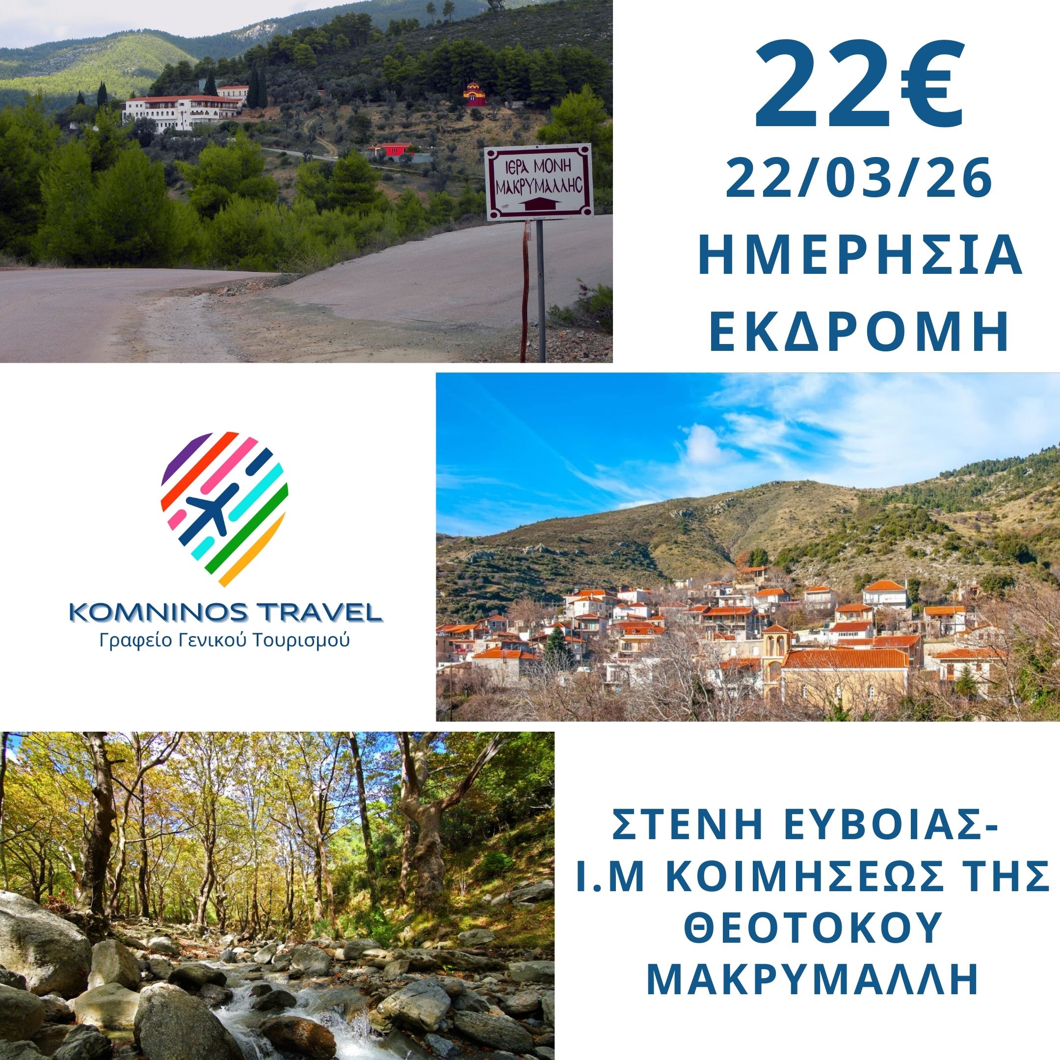 22/03/2026 ΗΜΕΡΗΣΙΑ ΕΚΔΡΟΜΗ ΣΤΕΝΗ ΕΥΒΟΙΑΣ- Ι.Μ ΚΟΙΜΗΣΕΩΣ ΘΕΟΤΟΚΟΥ ΜΑΚΡΥΜΑΛΛΗ
