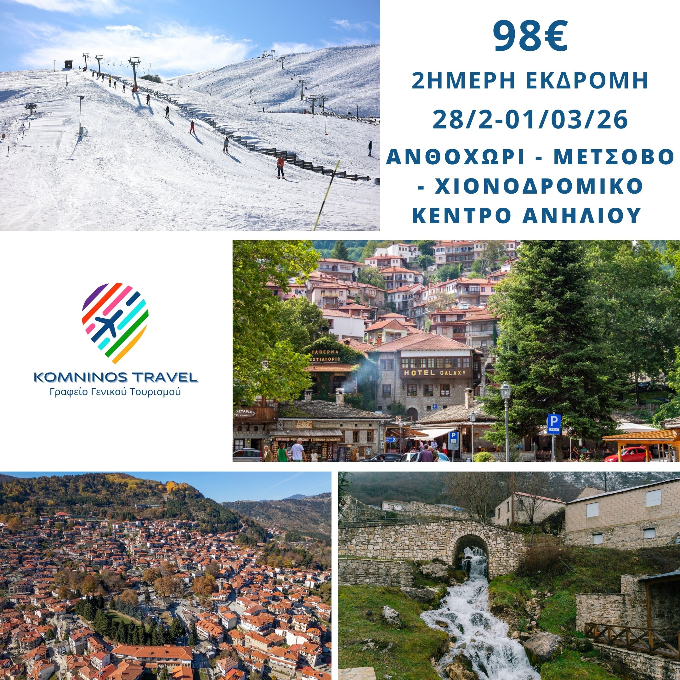 28/02-01/03/26 2ΗΜΕΡΗ ΕΚΔΡΟΜΗ ΑΝΘΟΧΩΡΙ – ΜΕΤΣΟΒΟ – ΧΙΟΝΟΔΡΟΜΙΚΟ ΚΕΝΤΡΟ ΑΝΗΛΙΟΥ